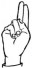 На ћирилици написано ДРАГИЈА ЉУБОМИРОВИЋ састоји се из 18 слова [?]. Исписано ћириличном једноручном азбуком за глувонеме: